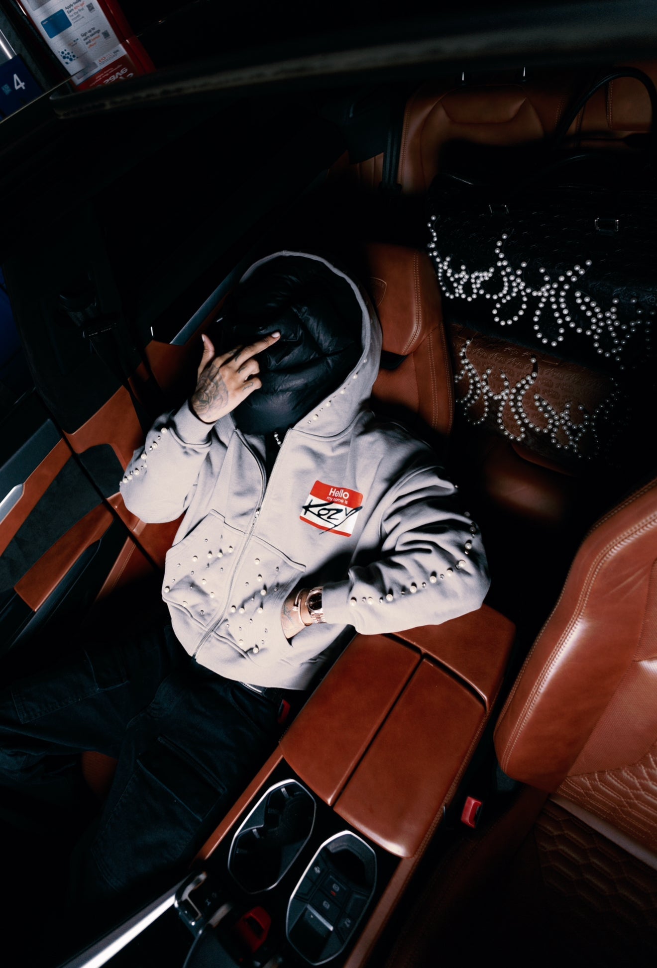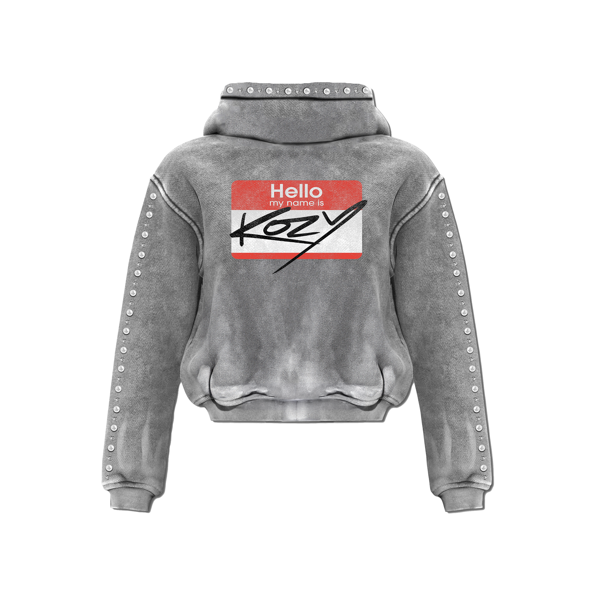 Grauer „Hello My Name Is Kozy“-Reißverschluss